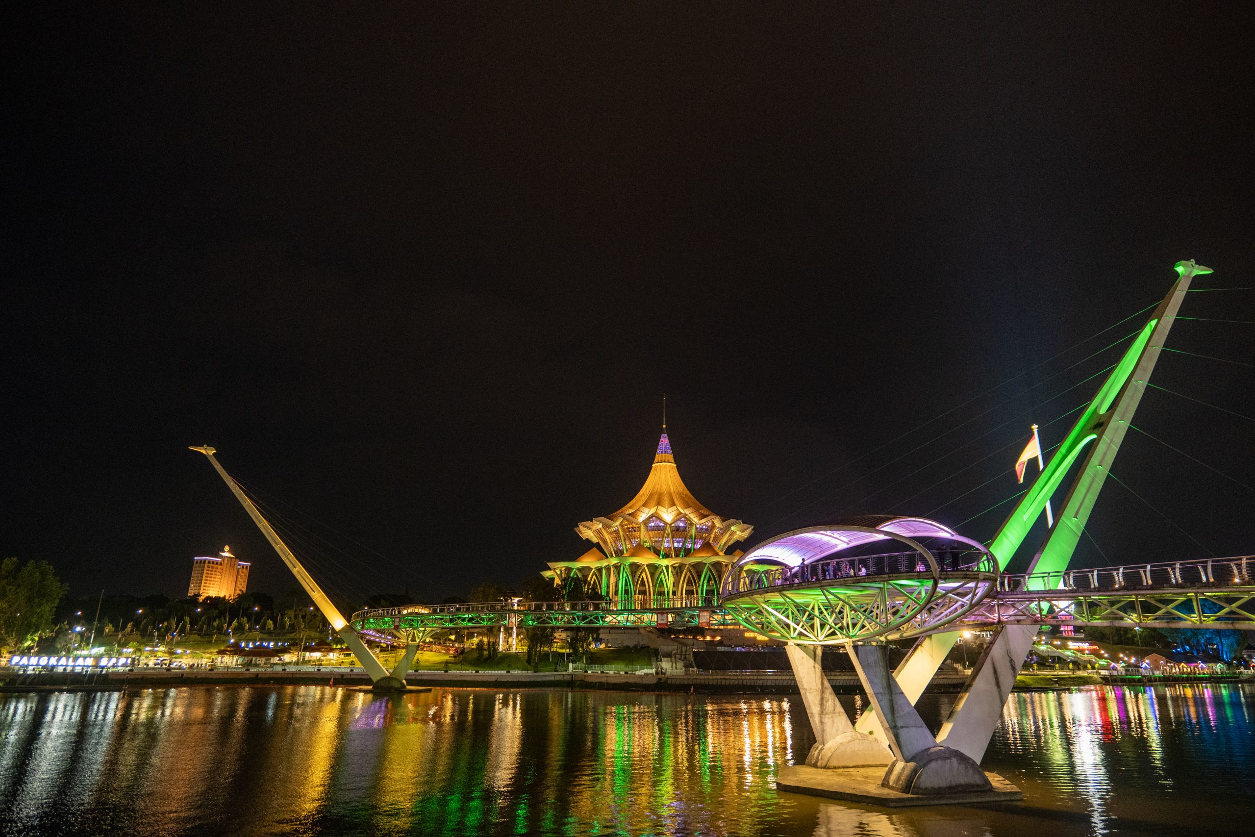 Die Promenade selbst lädt mit Kolonialbauten, Kunstinstallationen und kleinen Märkten zum Bummeln ein. Abends verwandelt sich die Szenerie in ein Lichterspiel mit beleuchteten Brücken, Straßenmusik und Wasserspielen – fast schon ein wenig zu kitschig, zumal sich Kuching selbst den Titel „Stadt der Katzen“ verliehen hat. Die felinen Freunde begegnen einem an jeder Ecke – als Statue, Zeichnung oder comichafte Installation.