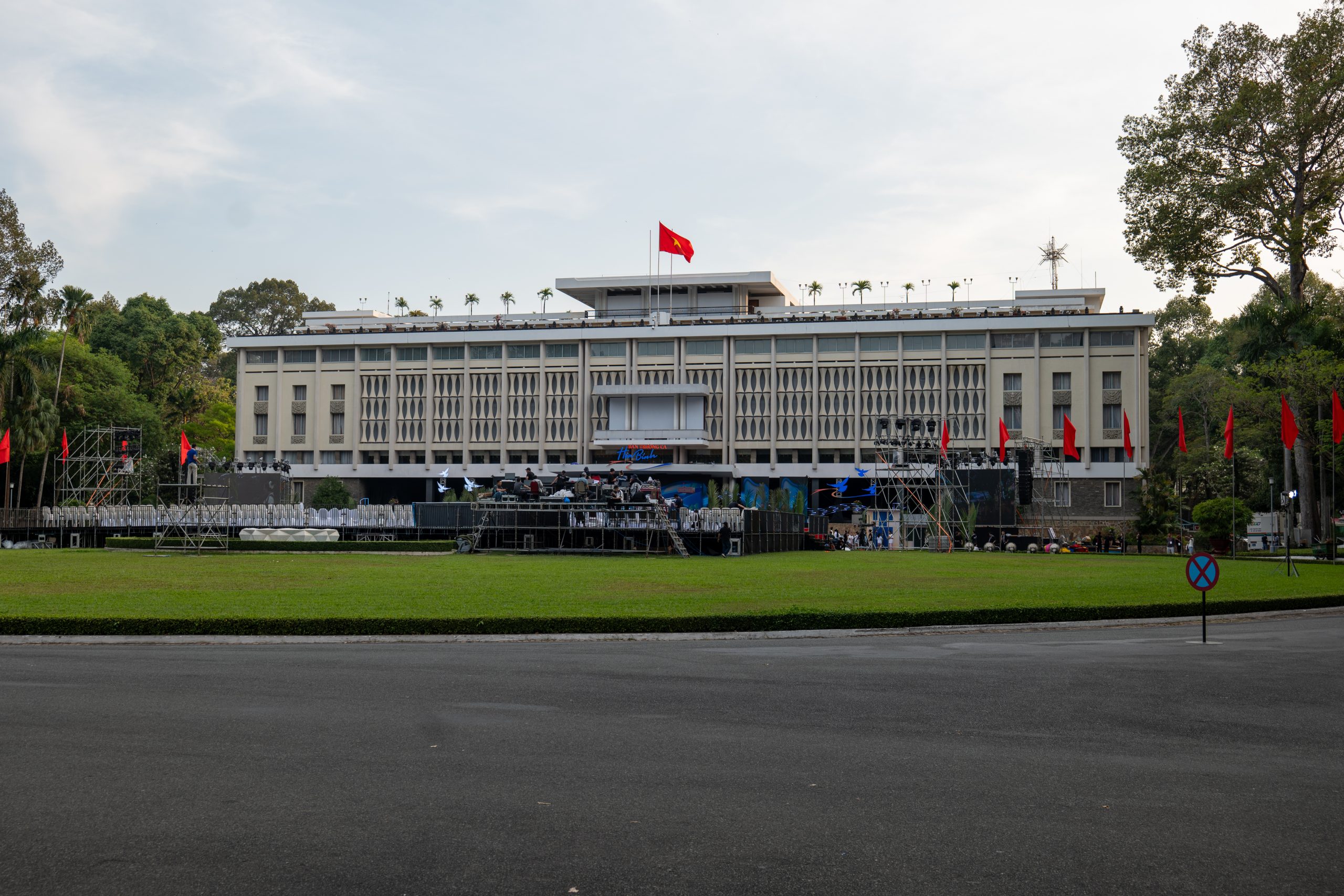 In der Nähe des Unabhängigkeitspalasts und des Kriegsmuseums beobachten wir rege Betriebsamkeit auf den Straßen: Große Tribünenkonstruktionen werden aufgebaut, in den Parks wird das Laub vom Rasen gefegt, und ganz Saigon schmückt sich mit der Landesflagge – dem gelben Stern auf rotem Grund. Bald erfahren wir den Grund: In wenigen Wochen feiert Vietnam den 50. Jahrestag der Befreiung Saigons durch nordvietnamesische Truppen – das Ereignis, das das Ende des Vietnamkriegs markiert und als Tag der Wiedervereinigung begangen wird.