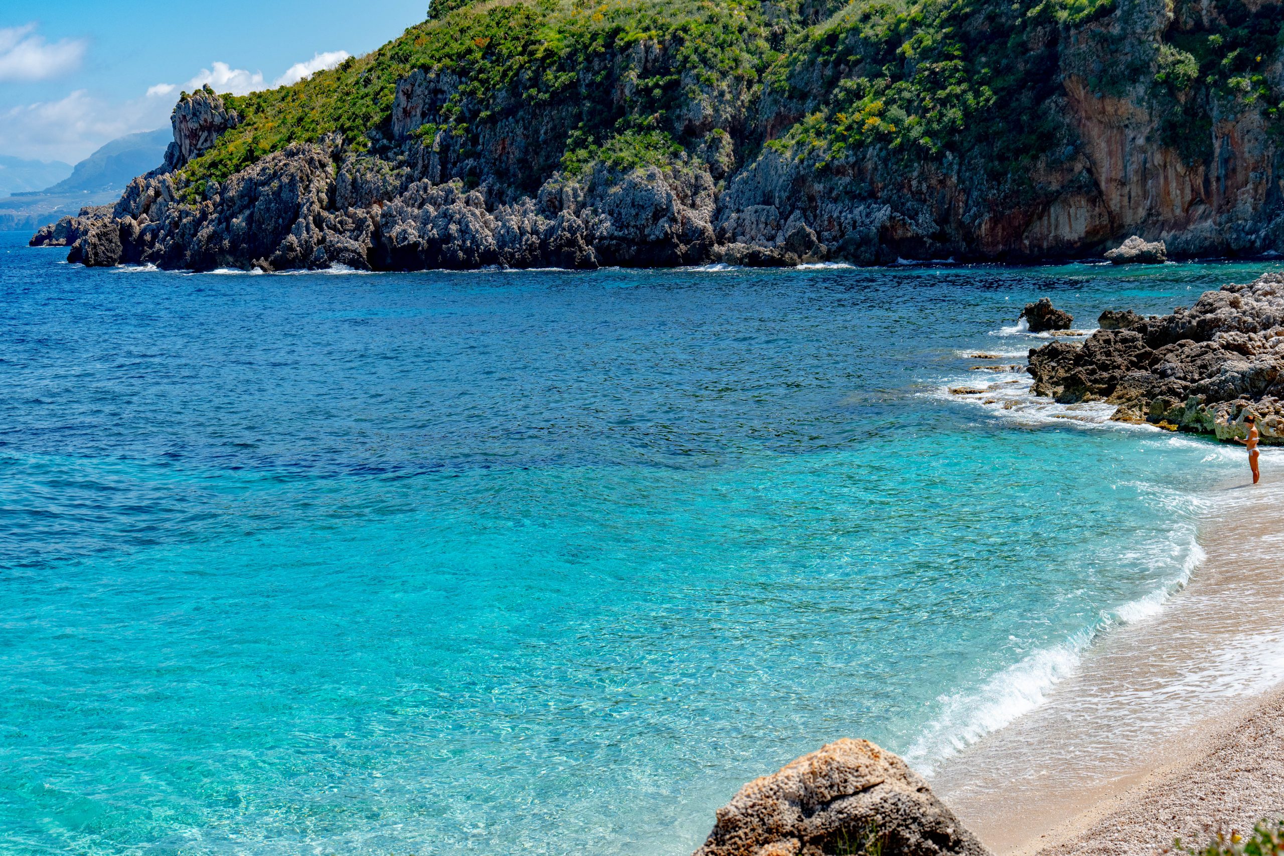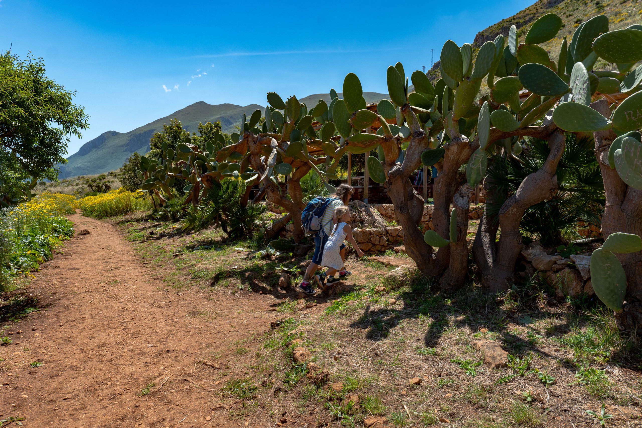 Nach einer ausgiebigen Pause am Strand wandern wir noch zur Grotta dell* Uzzo, einer prähistorischen Höhle. Die Höhle wurde während des späten Paläolithikums und des Mesolithikums von Menschen genutzt und ist bekannt für ihre archäologischen Funde. In ihr wurden Überreste von Steinwerkzeugen und Tierknochen gefunden, die darauf hinweisen, dass die Höhle von Jägern und Sammlern genutzt wurde, die dort lebten und jagten. Es wurde auch eine Fülle von Wildpflanzen und Nüssen gefunden, was darauf hindeutet, dass diese Menschen auch Pflanzen gesammelt und gegessen haben. Eine bemerkenswerte Entdeckung in der Höhle war ein gut erhaltenes menschliches Skelett, das in einem ausgegrabenen Bereich gefunden wurde. Das Skelett wird auf etwa 9.000 Jahre alt datiert und ist das älteste bekannte menschliche Skelett auf Sizilien. Die Grotta dell’Uzzo ist auch bekannt für ihre beeindruckenden Stalaktiten und Stalagmiten sowie für die Tatsache, dass sie immer noch von einer unterirdischen Quelle durchströmt wird, die das ganze Jahr über Wasser liefert und ein wichtiger Lebensraum für Fledermäuse ist. So weit kommen wir aber nicht hinein, der Zutritt ist für allein wandernde Gruppen verschlossen, man bräuchte einen Guide.