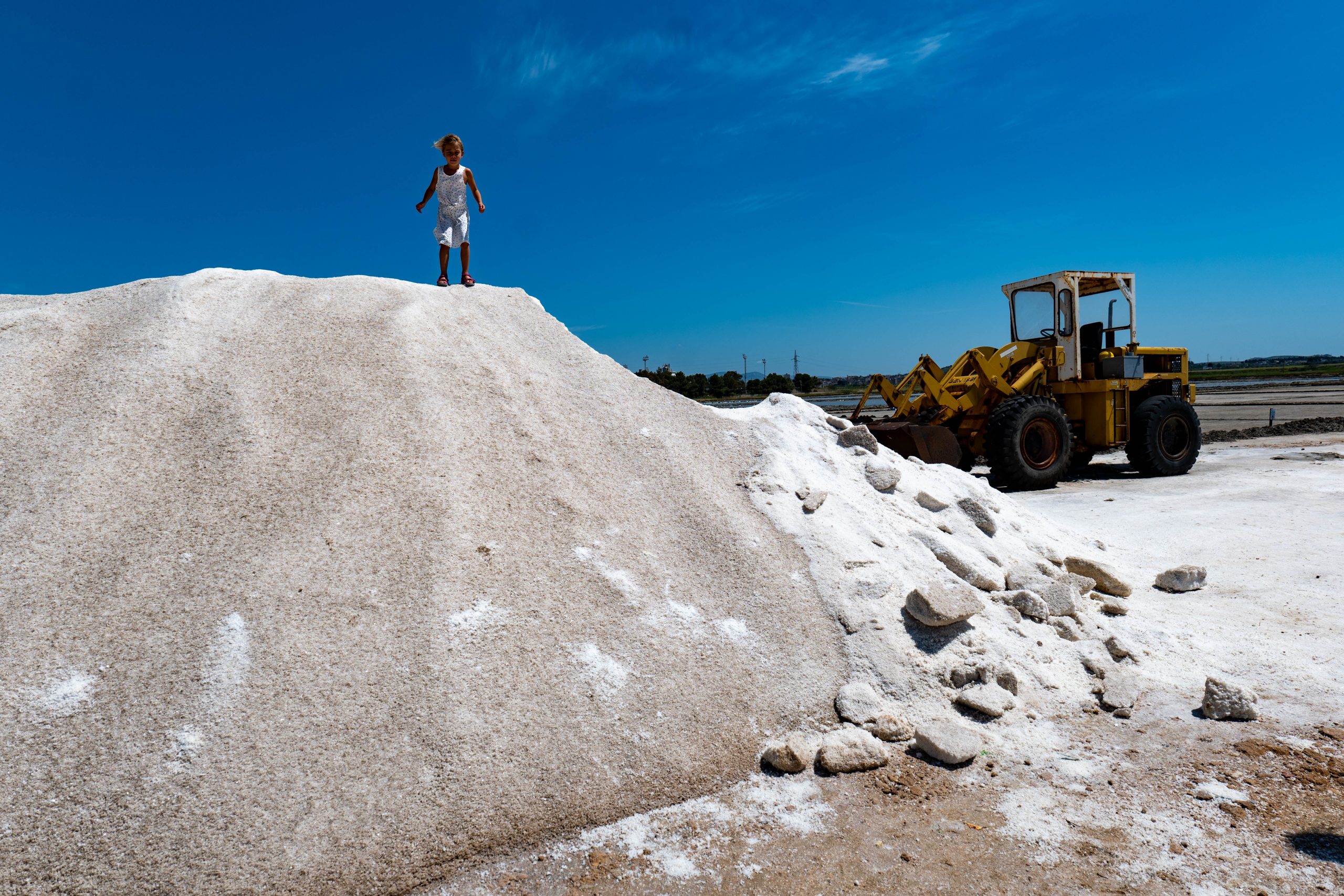Wie auch in der Camargue, in der es ähnliche Salinen gibt, hat sich auch hier eine recht einzigartige Flora und Fauna eingefunden: Die Ufer der Salzpfannen sind mit Queller bewachsen und in den Pfannen tummeln sich einige exotische Algen, die das ganze Wasser rot färben. Diese werden vorzugsweise von Flamingos gefressen, die dann die Carotinoide der Algen in ihr Gefieder einbauen und von nun als als rosa Stelzvögel durch’s Leben laufen müssen. Und so ist unsere Hoffnung nicht unbegründet, in den Salinen einige dieser seltsamen Zeitgenossen auf einem Bein stehend antreffen zu können – und sie wird nicht enttäuscht. Wir verbringen einige vergnügliche Stunden bei der Vogelbeobachtung, wandern ein wenig an den Rändern der Salzpfannen entlang und lassen uns den Seewind um die Nase wehen.