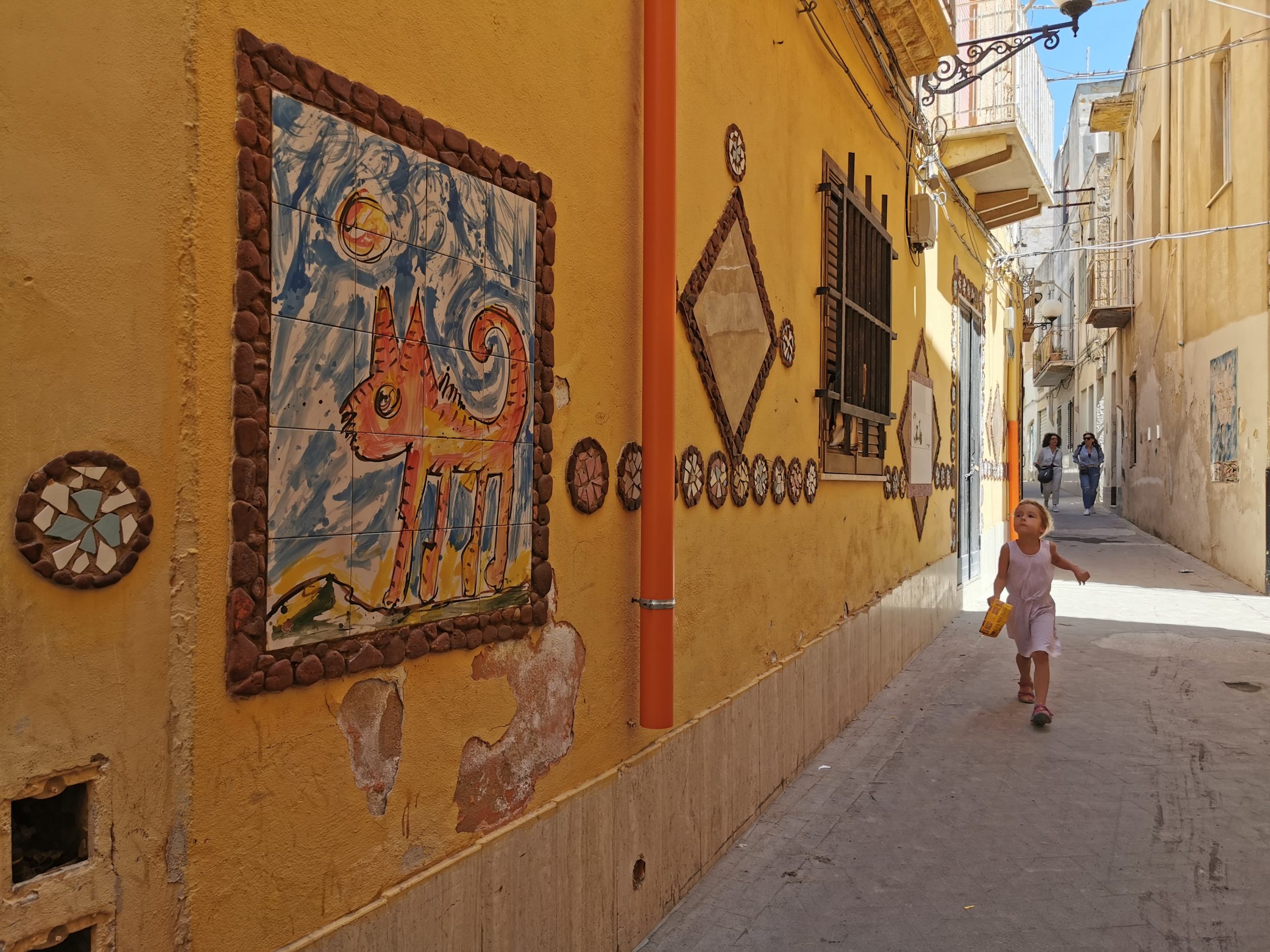 Aber zurück nach Sizilien. Wir parken unser Wohnmobil im Hafen und machen uns zu Fuß auf den Weg in die Altstadt. Die ist, so zumindest hatte der Stellplatzbetreiber angekündigt, ein wahres Juwel der sizilianischen Architektur und Geschichte. Die engen Gassen und alten Gebäude erzählen von der reichen, bis in die Antike zurückreichenden Vergangenheit. Die Häuser sind alle aus Stein gebaut und in warmen Farben gestrichen, was ein sehr malerisches Bild ergibt. Die Straßen sind mit Kopfsteinpflaster bedeckt und gesäumt von kleinen Geschäften und Cafés, die wieder typisch sizilianische Produkte und Spezialitäten verkaufen. Besonders auffällig sind die unzähligen Wandgemälde, Mosaike und bemalten Fliesen, die an jeder Straßenecke an den Hauswänden hängen. Durch die Altstadt führt ein gut ausgeschilderter Rundweg, der uns in etwa drei Stunden an allen sehenswerten touristischen Highlights vorbeiführt.
