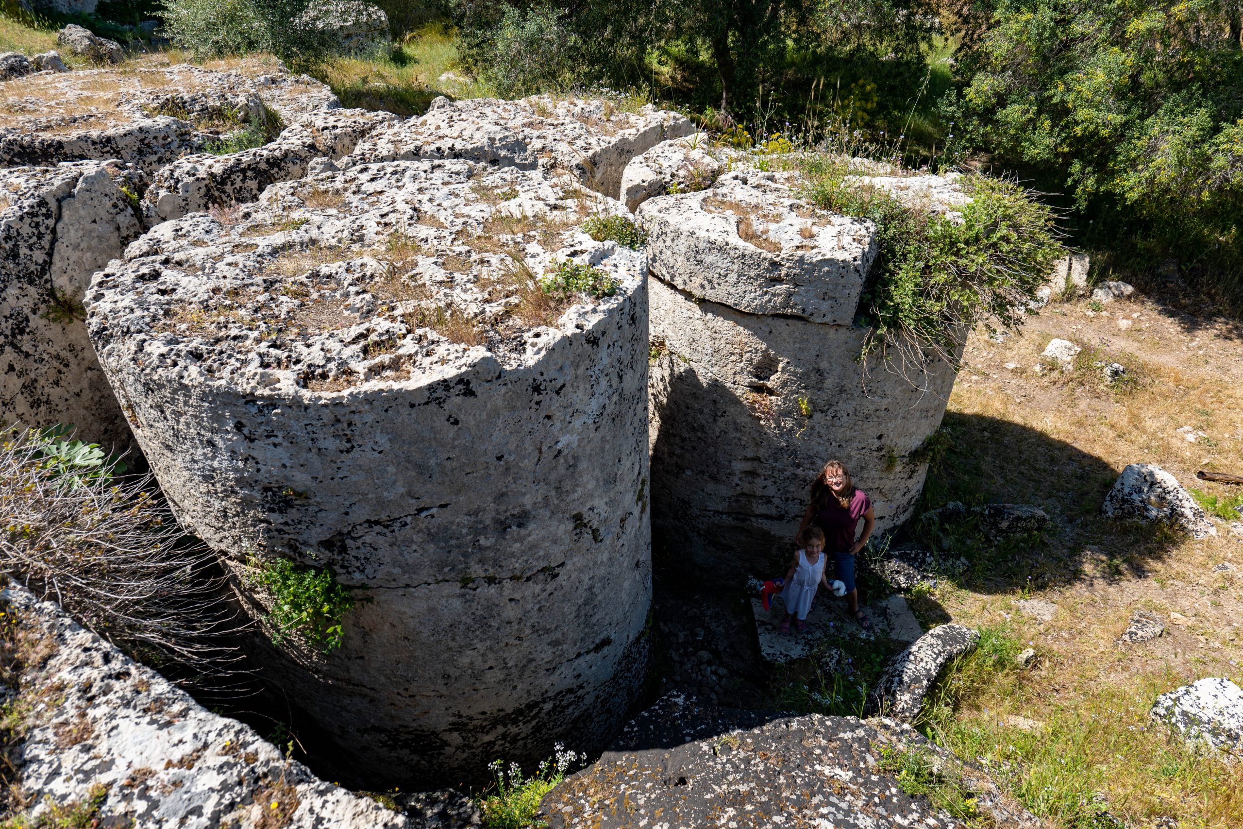 Nach dem vergnüglichen Altstadtbummel führt uns die Reise weiter in Richtung unseres nächsten Ziels, nämlich Selinunte, einer Ausgrabungsstätte mit mehreren gut erhaltenen Tempeln aus Griechischer Besiedlungszeit. Für heute nehmen wir uns aber noch nicht die Tempel selbst vor, dafür möchten wir uns mehr Zeit lassen, sondern bestaunen zunächst die Cave die Cuso, den Steinbruch, in dem die Säulen und Steine für die Tempel geschlagen worden sind. Cave die Cuso ist insofern berühmt, als dass er bis zum 4. Jahrhundert v. Chr. aktiv genutzt und ein wichtiger Wirtschaftsfaktor für die Region war. Während der punischen Kriege zwischen Rom und Karthago wurde Selinunte im Jahr 250 v. Chr. zerstört und die Cave di Cusa wurde aufgegeben. Im Wesentlichen kamen die Katharger am Strand an, jeder Steinmetz in Cave die Cusa ließ seinen Meißel fallen und rannte weg – der Steinbruch geriet in Vergessenheit und wurde erst im 19. Jahrhundert wiederentdeckt. Man kann insbesondere die unterschiedlichen Stadien der Herstellung der Tempelsäulen hervorragend erkennen.