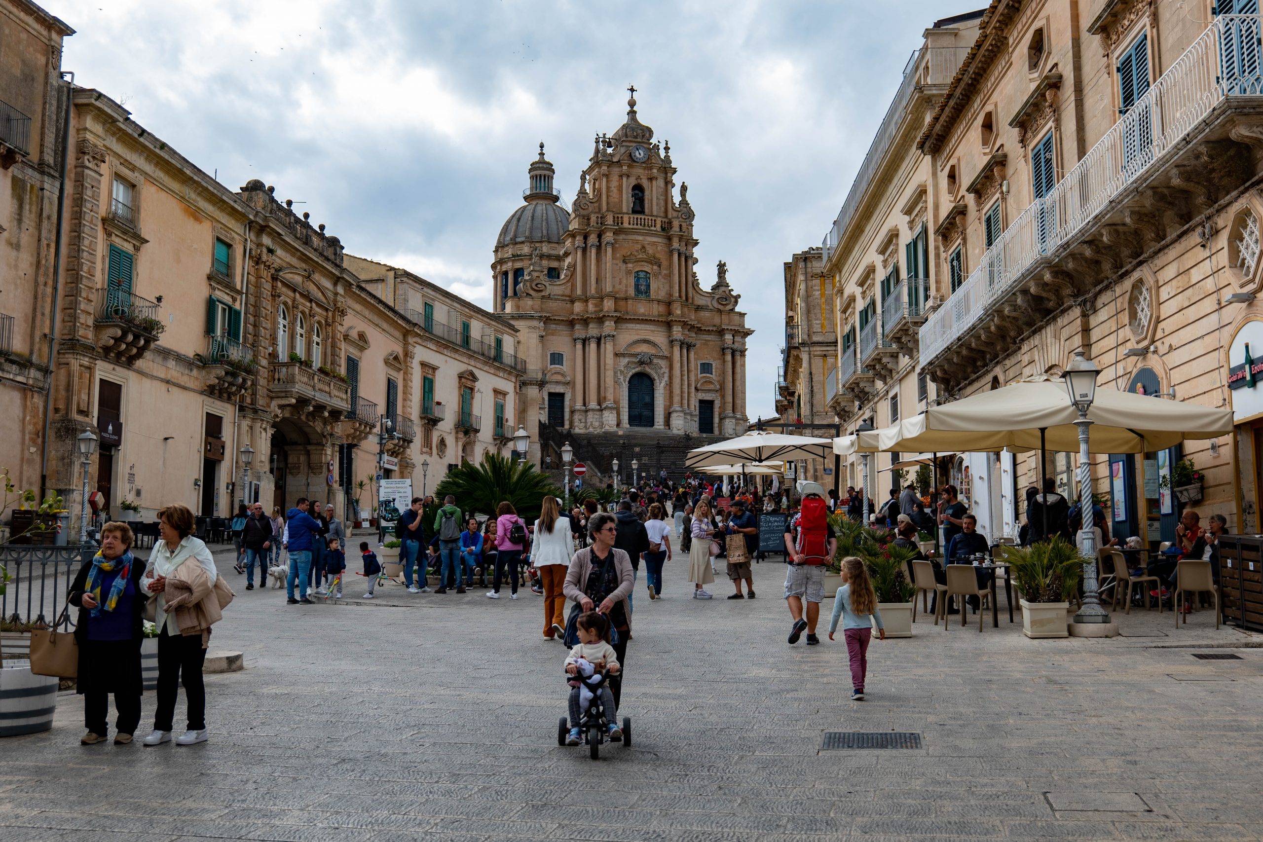 Nach zwei Tagen Strand beschließen wir, der nahegelegenen Provinzstadt Ragusa einen Besuch abzustatten. Diese Stadt ist als Teil des Städteensembles Val de Noto für ihre Barocken Bauten bekannt. Im 15. Jahrhundert hatte der damalige Herrscher, Graf Cabrera, ein Erbpachtsystem eingerichtet, das viele Bauern reich gemacht hatte. Im Jahre 1693 wurde die gesamte dann Region durch ein großes Erdbeben dem Erdboden gleich gemacht und anschließend stritten sich Adel und Bauern um den Wiederaufbau. Man konnte sich nicht einigen, und so wurden einfach zwei Städte neu errichtet. Die Adligen zogen einen Hügel weiter und gründeten die heutige Stadt Ragusa, die Bauern errichteten das heutige Ragusa Ibla auf den Trümmern der alten Stadt.