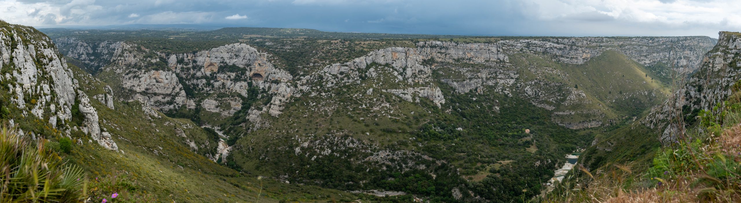Auch für heute sagt der Wetterbericht eher mittelprächtiges Wetter voraus, so dass wir erneut eine kleine Wanderung in Angriff nehmen. War die Landschaft im Südosten Siziliens eher flach und von Obstbaumplantagen gezeichnet, so türmen sich ab Noto in nördliche Richtung blickend wieder fast senkrechte Felswände vor uns auf. Diese Kalksteineformation, ein Ausläufer des Monte Iblei, wurde vom Fluss Cassibile auf einer Länge von 10 Kilometern fast 250 Meter tief eingschnitten. Es ist nicht ganz der Grand Canyon, aber es ist ein Canyon, und er ist gewissermaßen grande.