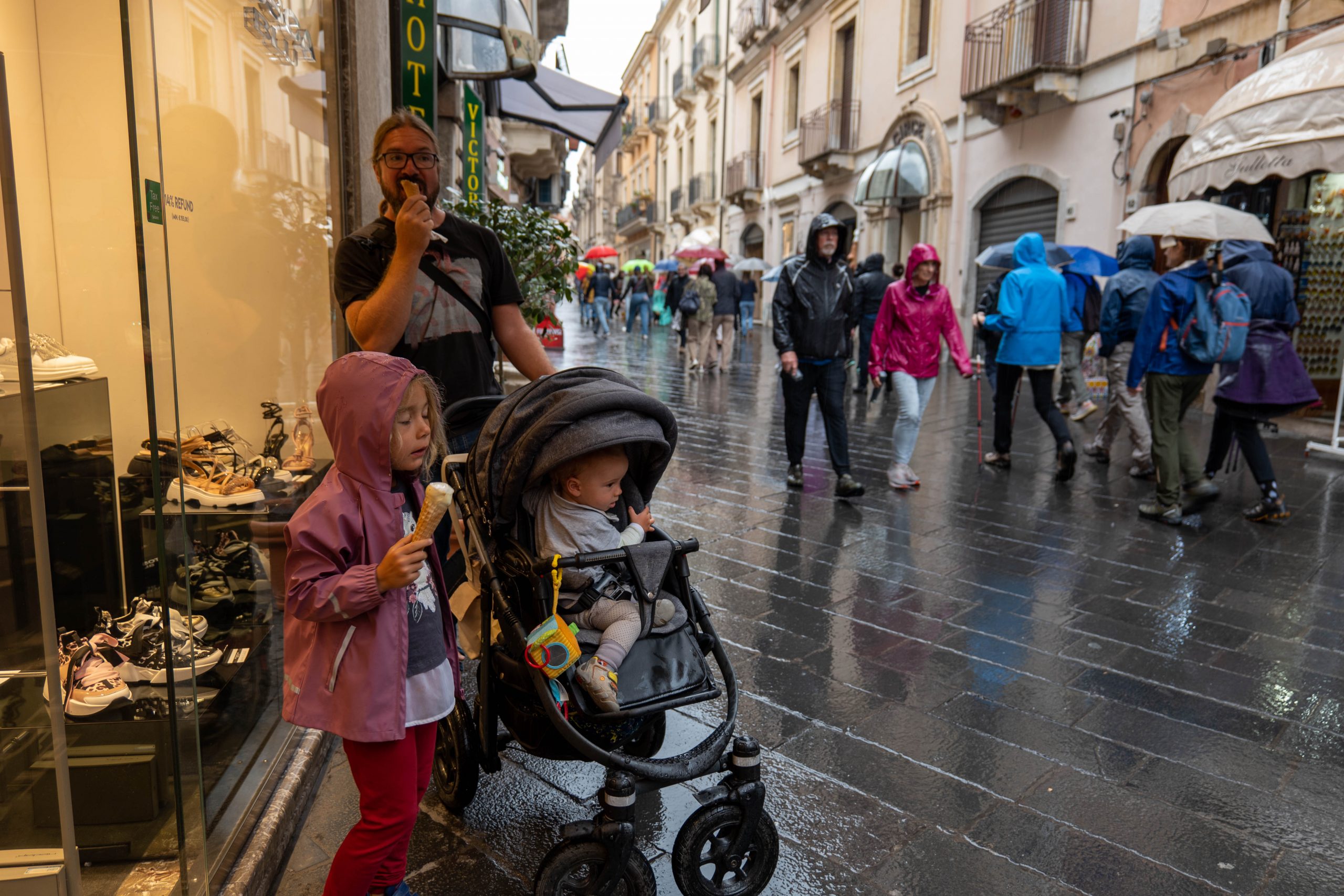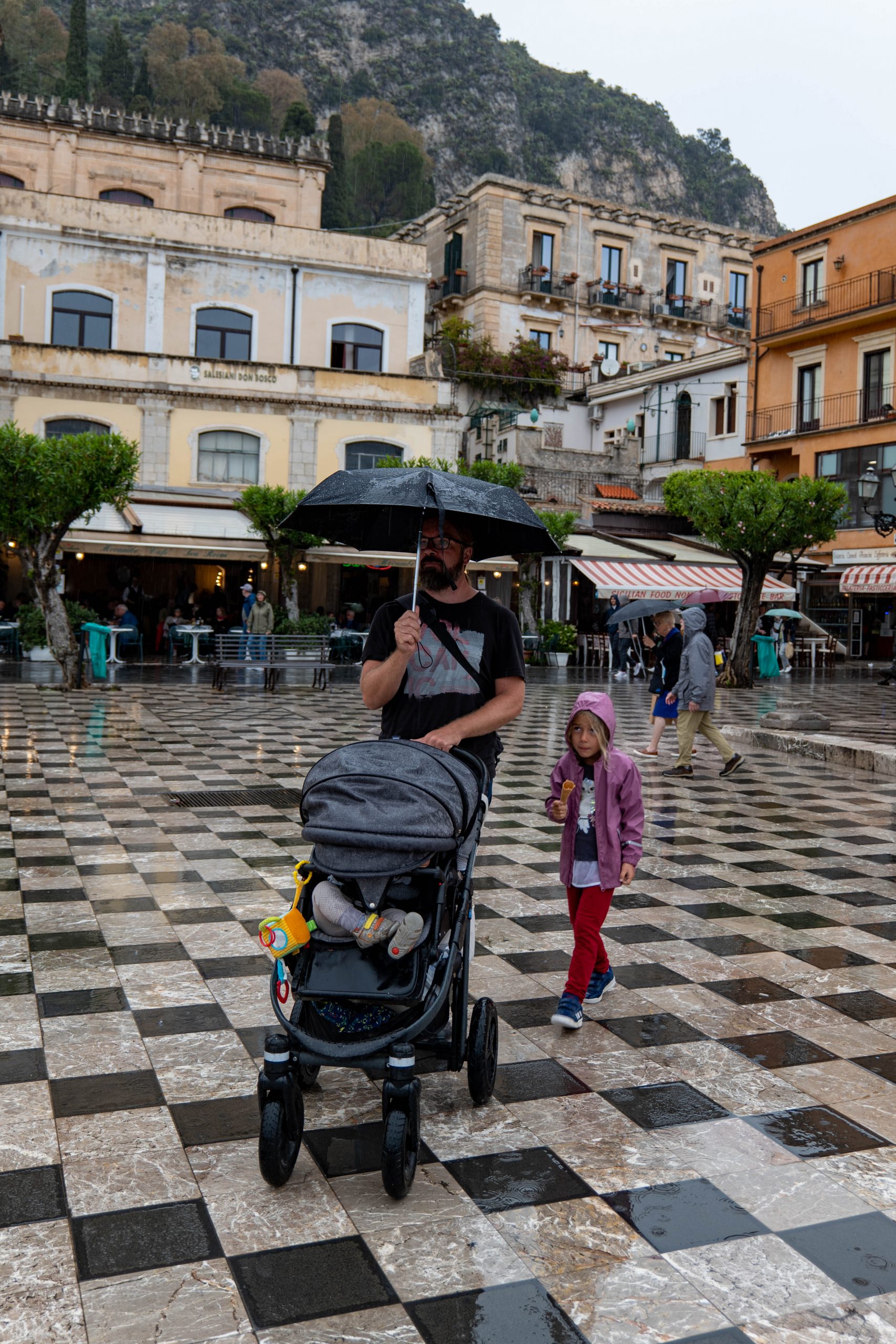 Wir halten es im Angesicht des Regens ein wenig kürzer: Nach nur drei Stunden ist unsere Runde durch die – zugegeben malerische – Altstadt beendet, eingeschlossen ein Besuch des Botanischen Gartens mit Kinderspielplatz und einem Blick auf die Isola Bella, eine dem Ort vorgelagerte Halbinsel, auf der früher die Pflanzen für den Botanischen Garten vorgezogen worden waren.