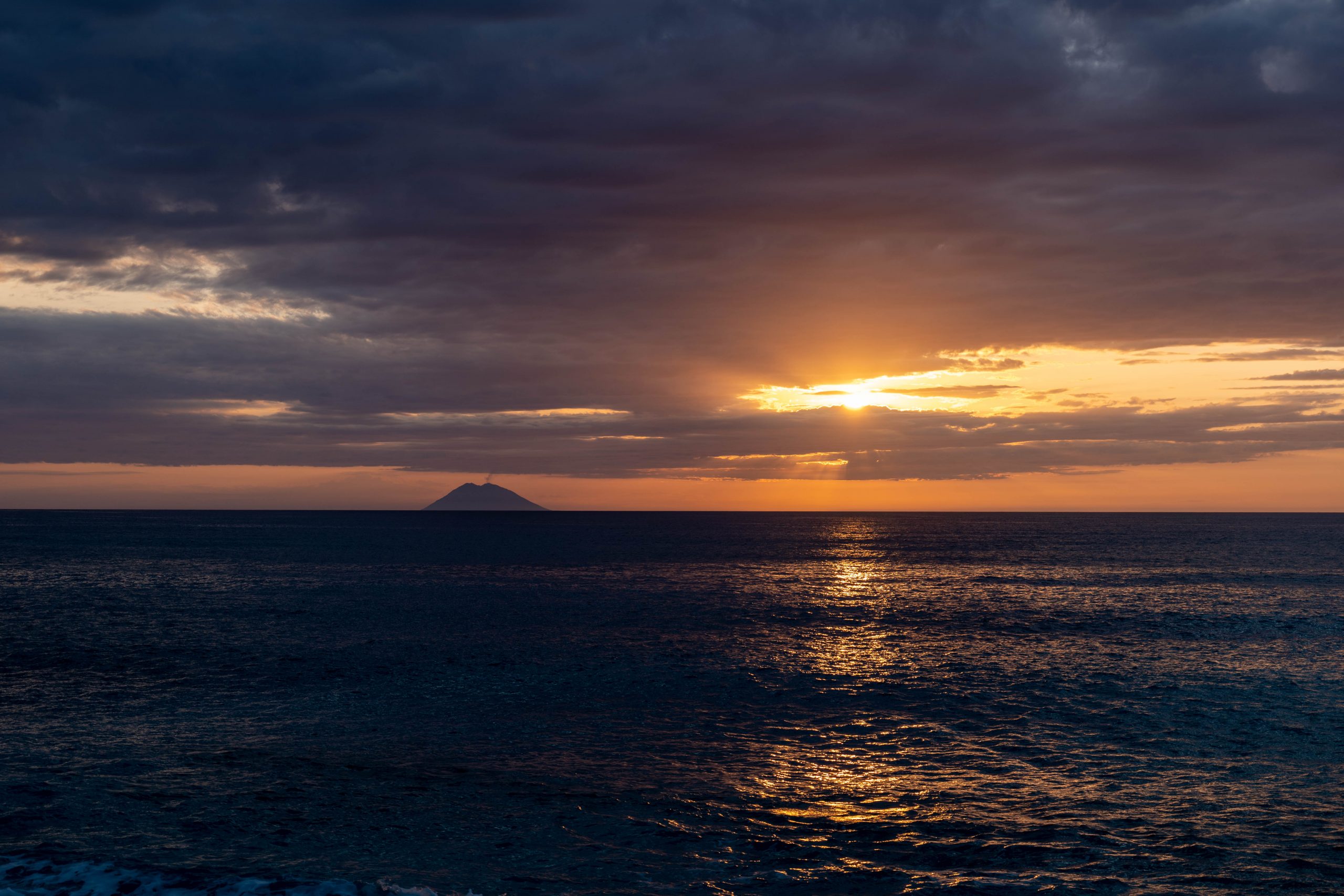 Neben dem selbstverständlichen Stadtbummel durch die engen Gassen haben wir einen tollen Strand vor der Haustür, und die Wassertremperaturen lassen es so langsam auch gut zu, baden zu gehen. Für die Portion Abenteuer sorgen die Wellen, die bei Flut an einer kleinen Kante ein paar Meter vor der Küste brechen, so dass man sich, wenn man will, beim Baden ganz gut durchwirbeln lassen kann. Wir lassen es uns hier gleich drei Tage lang gut gehen, auch, weil das Wetter uns nach einem anfänglichen Regenschauer am ersten Tag dann doch gnädig ist und uns Badewetter beschert. Und als wäre das alles nicht genug, haben wir Abends zum Sonnenuntergang einen prächtigen Blick auf den etwa 60 Kilometer vor der Küste liegenden Vulkan Stromboli, an dessen Gipfel im Gegenlicht eine feine Rausäule erkennbar ist.