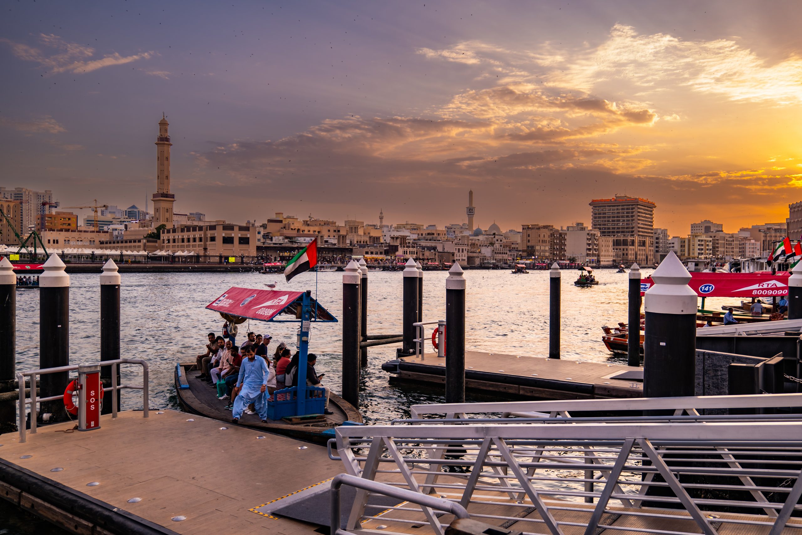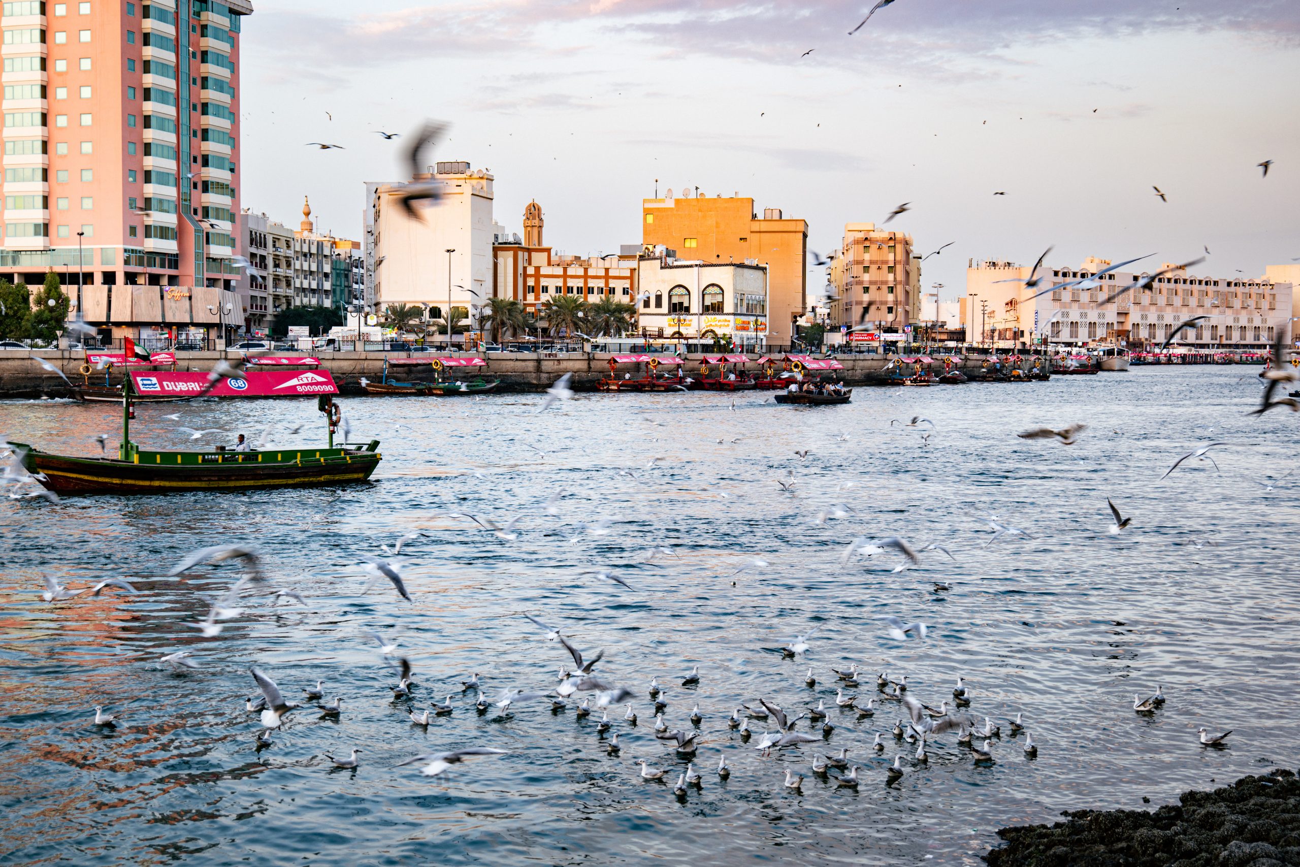 Langsam beginnen unsere Füße zu schmerzen, und wir verlassen den Souq in Richtung Dubai Creek, einer etwa 13 Kilometer langen Meeresbucht, die sich wie ein Fluss durch die Stadt zieht. Der Creek teilt die historischen Stadtteile Deira und Bur Dubai und kann heute noch mit traditionellen Holzbooten, den Abras, überquert werden. Im Gegensatz zu den astronomischen Preisen in der Mall gestern ist es hier im historischen Dubai überraschend günstig: Die Fahrt mit der Abra kostet uns alle zusammen gerade einmal einen Euro. Sie ist kurzweilig und bietet auf jeder Seite beeindruckende Ausblicke. Der ganze Fluss und der Himmel sind von hunderten, wenn nicht tausenden, Möwen bedeckt, und der Betrieb erinnert an den auf dem Canale Grande in Venedig.