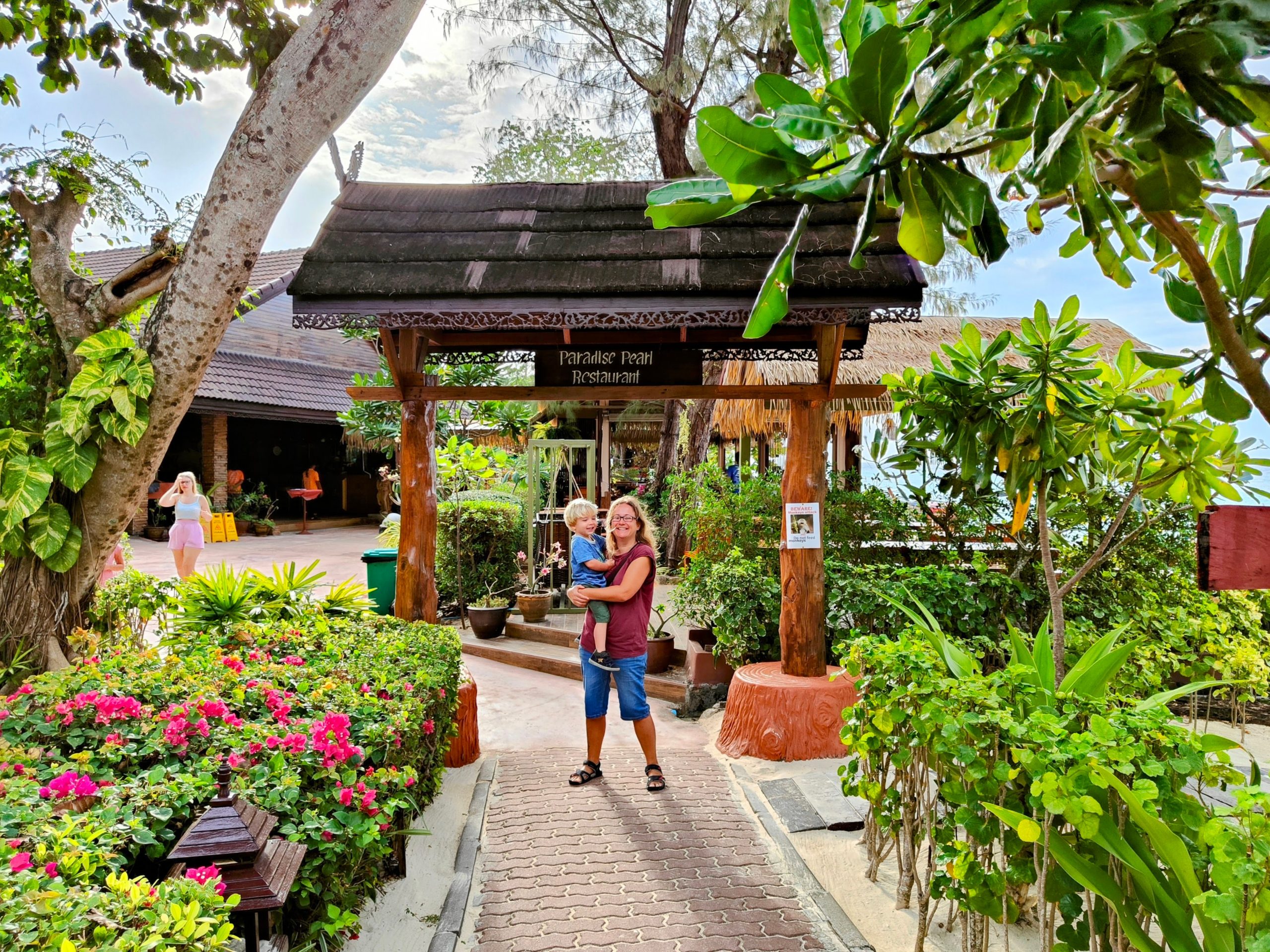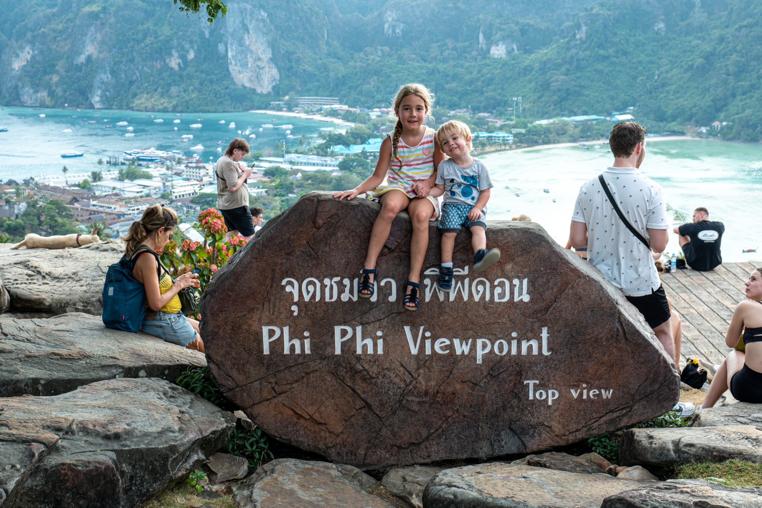 Diese Aussichtspunkte verdienen besondere Erwähnung – nicht nur wegen ihrer extremen Instagram-Tauglichkeit, sondern auch, weil sie tatsächlich Sehenswertes bieten. Der Weg dorthin führt zunächst durch Viertel von Koh Phi Phi, die in keinem Reiseführer auftauchen, für Nele aber sehr lehrreich sind. Die Häuser dort sind äußerst schlicht – oft kann man direkt hineinschauen und erkennt kaum Möbel. Viele Unterkünfte bestehen aus besseren Bretterverschlägen oder einfachen Wellblechhütten – eine Lebensrealität, die für viele Thailänder noch immer Alltag ist. Unterwegs passieren wir zudem einen künstlich angelegten Wasserspeicher, dessen Pegel gerade einmal zehn Prozent beträgt. Wasserknappheit ist hier – insbesondere auf Koh Phi Phi – keine Seltenheit. Im schlimmsten Fall muss Frischwasser per Tankschiff herangeschafft werden. Die Insel ist dem Besucheransturm schlicht nicht mehr gewachsen; insbesondere der Hauptort gilt als Partyhochburg. Wir bekommen davon allerdings wenig mit, da unser Hotel zehn Bootsminuten vom Haupthafen entfernt am ruhigen Long Beach liegt.