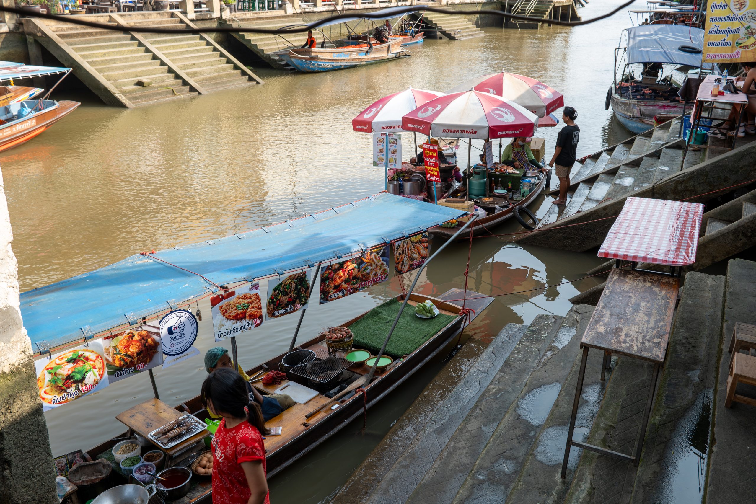 Die Geschichte des Floating Markets können wir hingegen kurz halten. Obwohl es hieß, dass dieser Wochenendmarkt bereits am Freitag seine Pforten öffnet, entdecken wir auf dem Wasser lediglich zwei vereinzelte Boote, während an Land nur einige wenige Marktstände dabei sind, sich auf den Tag vorzubereiten. Doch nach dem beeindruckenden Railway Market sind wir mehr als zufrieden und treten bald darauf die Rückfahrt ins Hotel an.