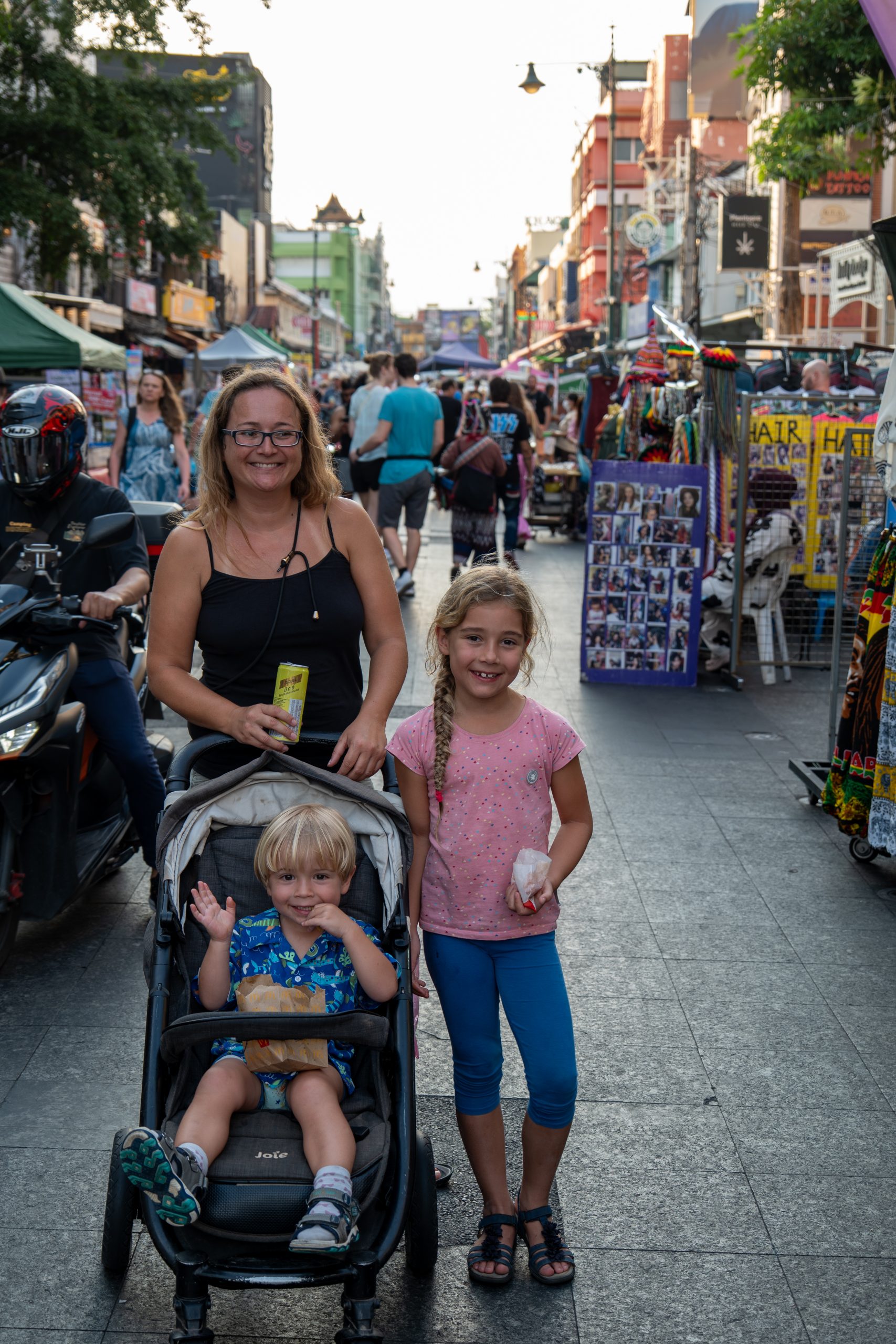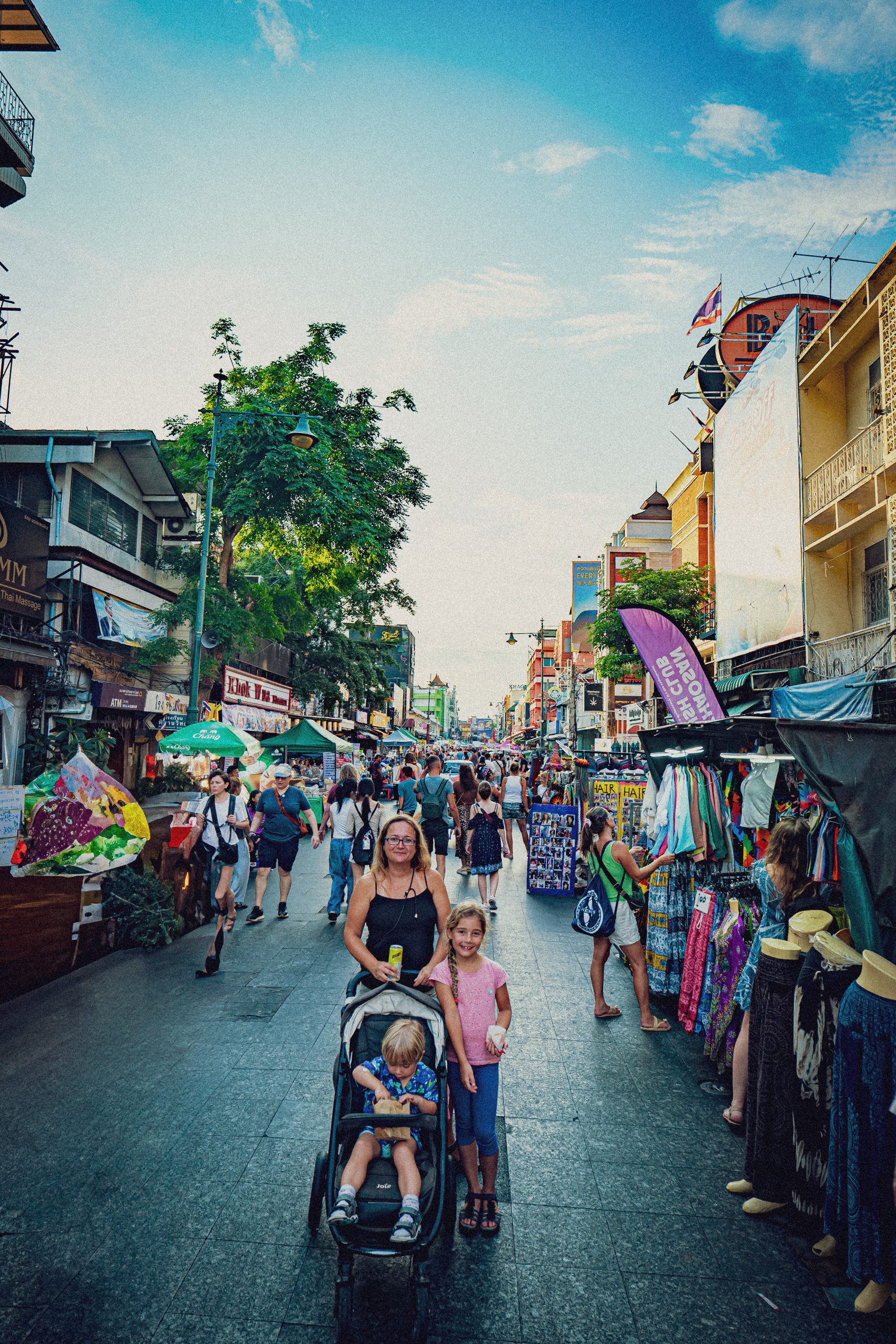Die Khaosan Road gilt als Mekka für Backpacker aus aller Welt. Tagsüber reiht sich ein Straßenstand an den nächsten, an denen günstiges (bis unschlagbar günstiges) Streetfood, Souvenirs und Kleidung verkauft werden. Nachts verwandelt sich die Straße in ein pulsierendes Partymekka. Laute Musik, Neonlichter und eine Mischung aus Bars, Clubs und Straßenkünstlern schaffen eine elektrisierende Atmosphäre. Trotz ihrer touristischen Ausrichtung bleibt die Khaosan Road ein Treffpunkt für Reisende, die hier Geschichten austauschen und das chaotische, aber faszinierende Flair Bangkoks erleben – so zumindest die gängigen Klischees.