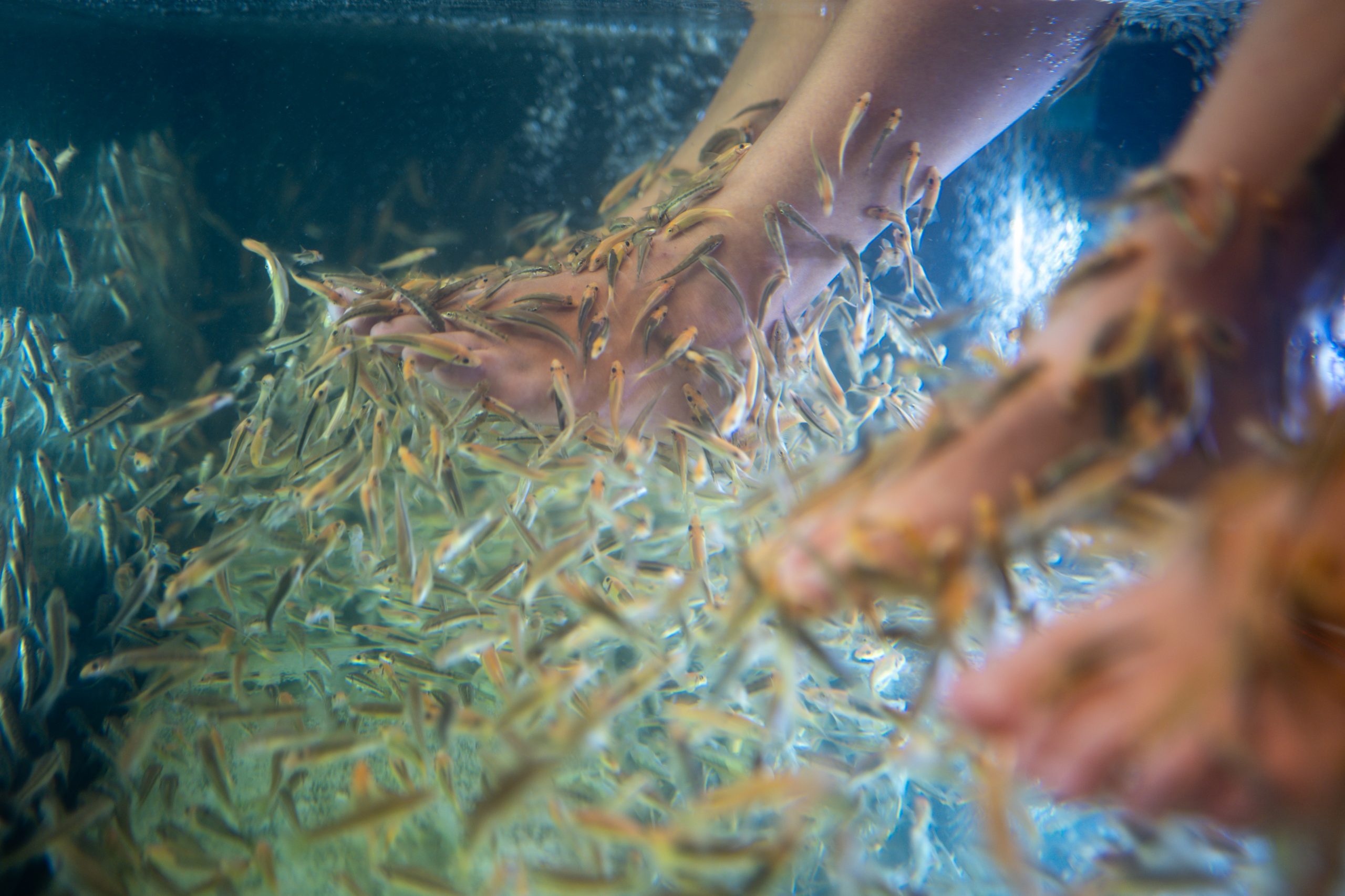 Dieses Viertel wurde im 18. Jahrhundert von chinesischen Einwanderern gegründet und zählt heute zu den lebendigsten und kulturell reichsten Gegenden Bangkoks. Wir lassen uns mit einem Tuk-Tuk hinfahren und tauchen ein in eine riesige Open-Air-Garküche, umgeben von glitzernden Lichtern und einer Menschenmenge, die flaniert und diniert. Wir treiben ein paar Stunden durch die Straßen, Antje und Nele lassen sich die Füße von Fischen reinigen, wir schnuppern hier, schauen dort – bis uns irgendwann die Beine schwer werden.